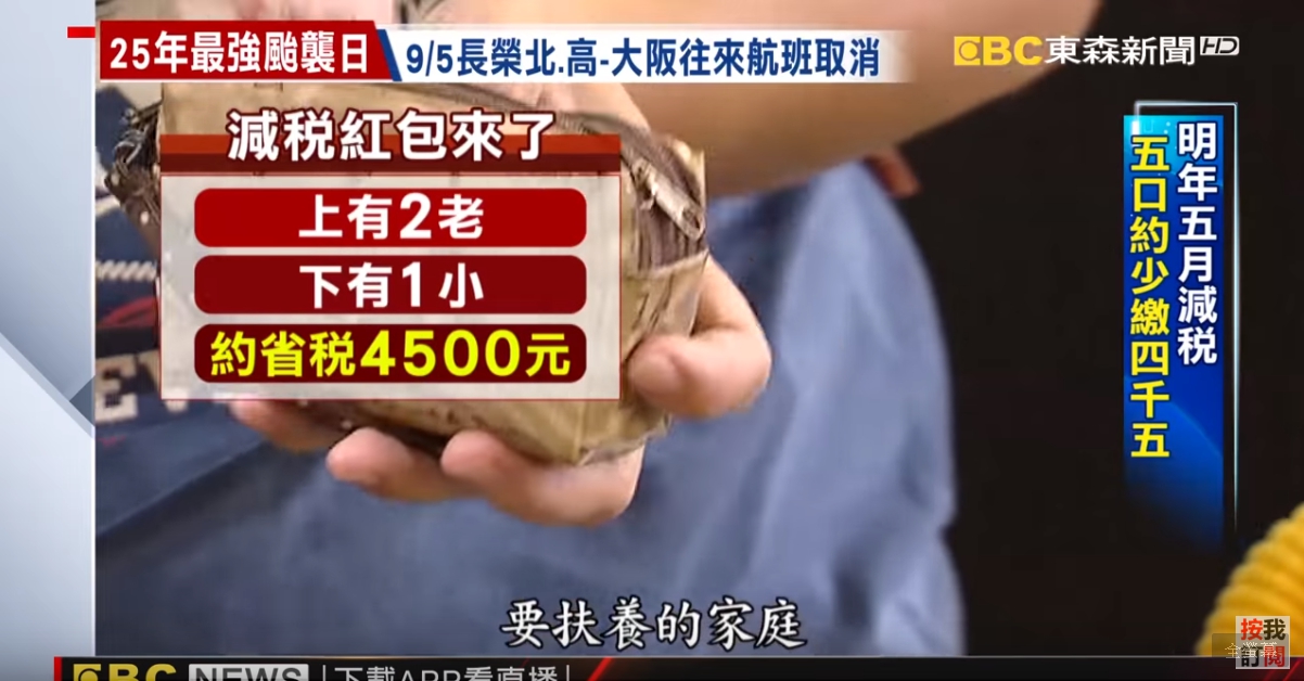 晨光會計事務所會計師徐慶國:「四口之家的話那就會多了2萬塊的扣除額,如果是用5%的級距的話就會省1000塊,如果是用12%的級距就會多省了2400塊的稅額。」