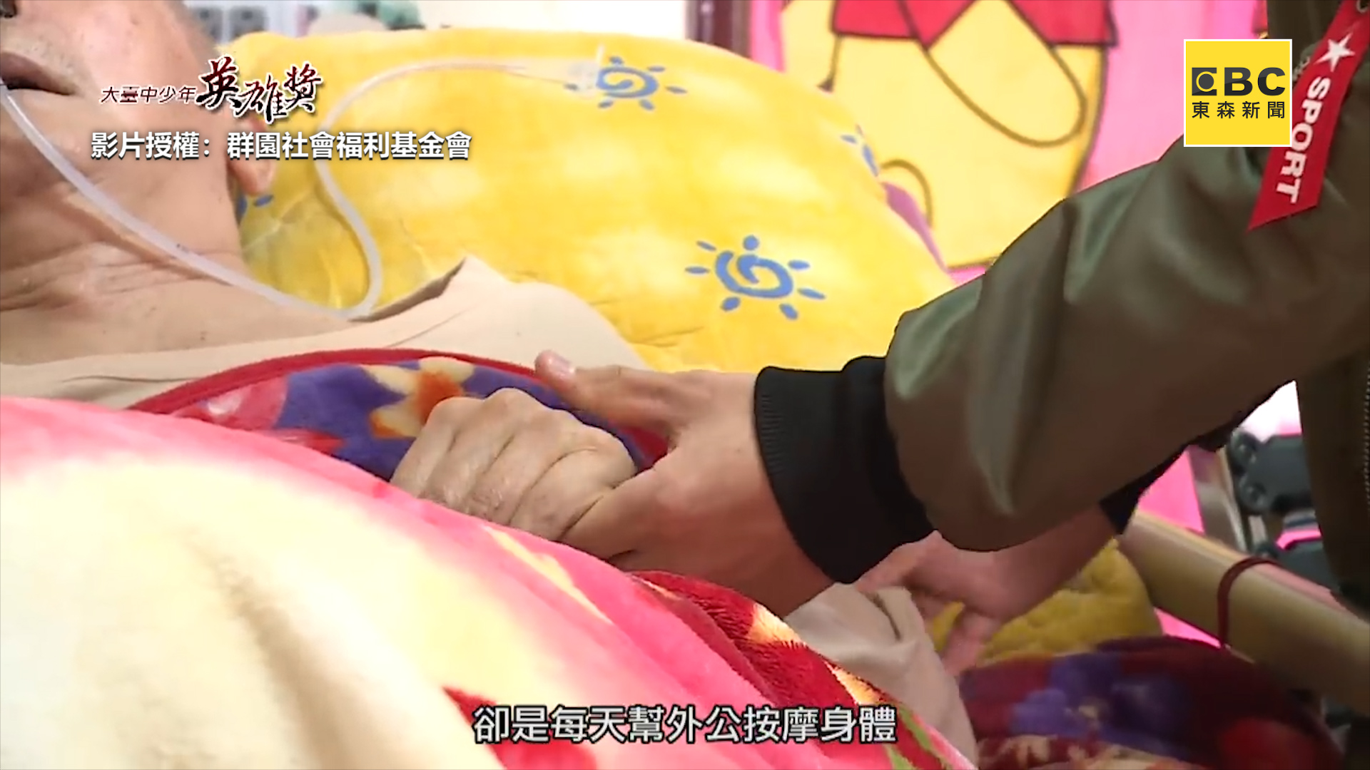 ▼每天放學回家,王忻哲都會幫忙照顧爺爺(圖/翻攝自群園社會福利基金會)