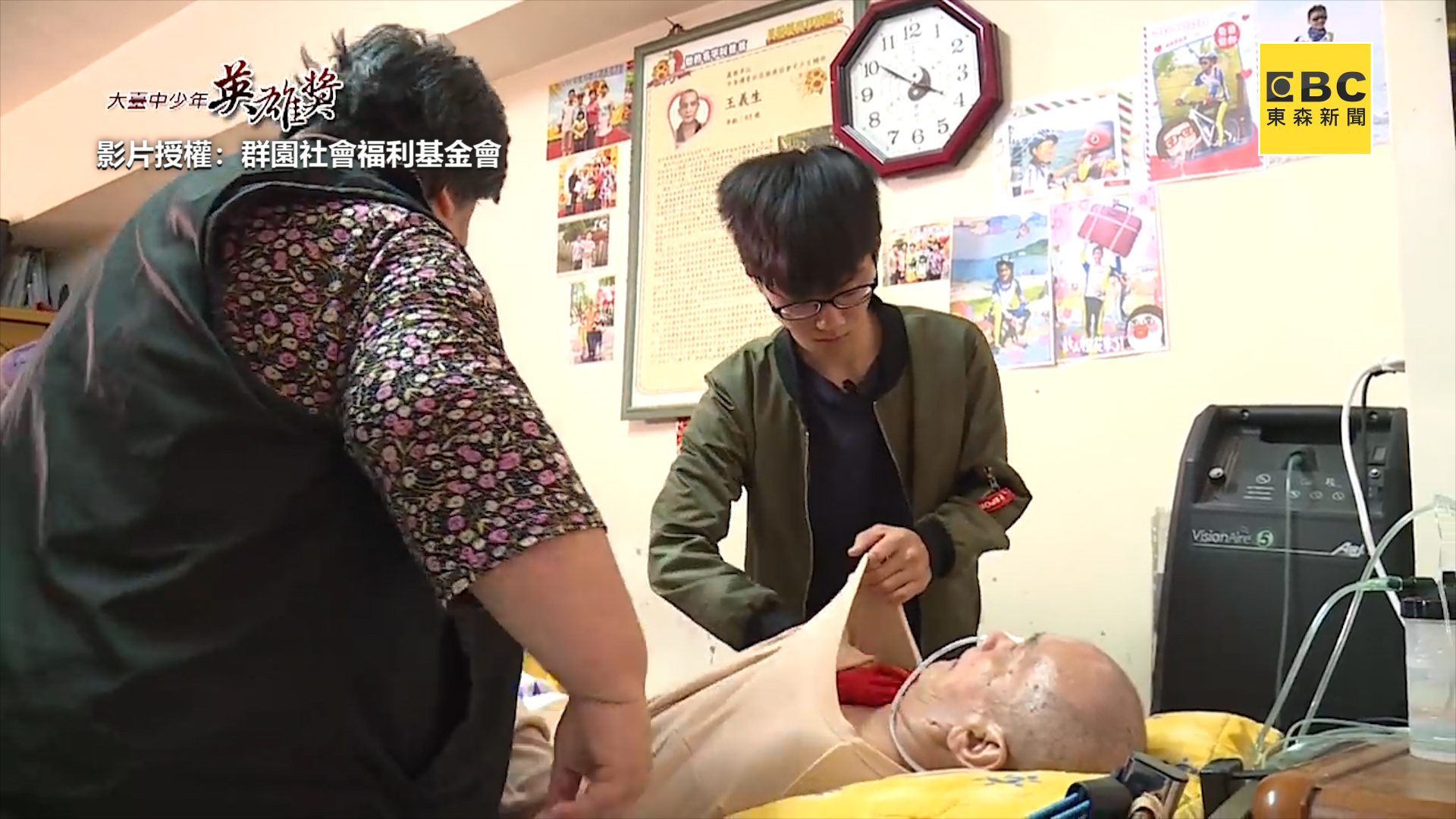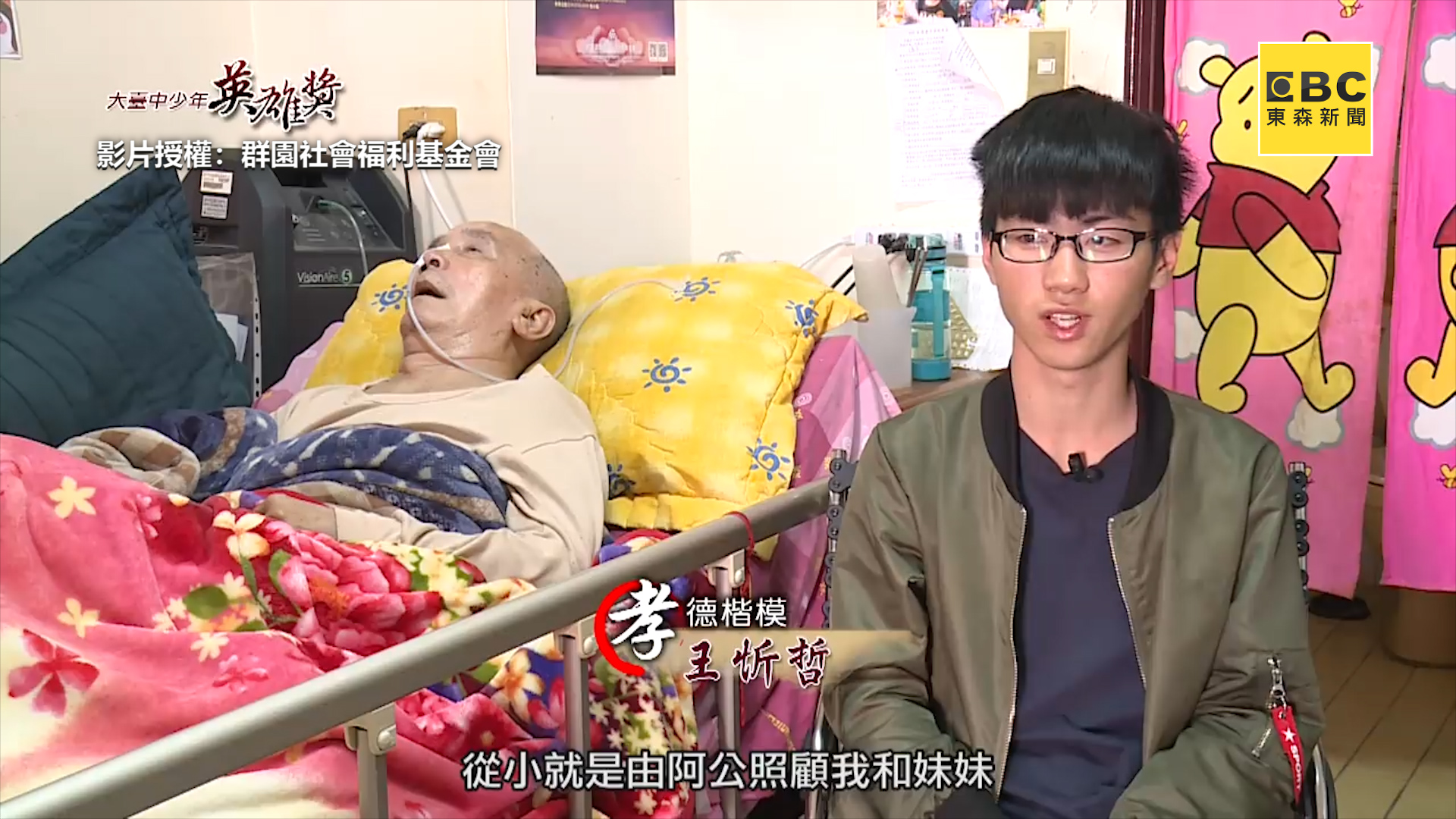 「從小就是由阿公照顧我和妹妹,所以現在換我來照顧他也是應該的。」王忻哲不喊苦,每天放學除了讀書、照顧爺爺之外,他還到