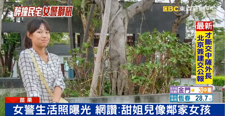 女警教訓嫌犯影片曝,網友也好奇,這1位兇狠女警的背影究竟長什麼模樣,警局提供照片曝光,生活照穿警察制服,笑容相當甜蜜,外出遊玩看起來就像個鄰家大女孩,她的長官表示女警工作,相當認真。