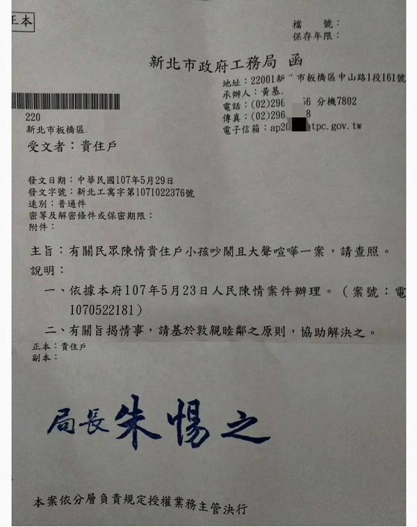 其實,原PO先前也曾發文表示,自從5月份搬家後,警察卻已3度到他家按門鈴,指出有人投訴他家「有小孩在哭鬧」,影響到別的住戶,還附上新北市工務局的來函,內容清楚標示,「民眾陳情貴住戶吵鬧且大聲喧嘩」,當時讓他氣炸直呼「到底是誰家有鬼啦!」、「為啥警察來3次都沒有記錄?」沒想到過了一陣子後,奇怪的事件卻仍沒有改善。