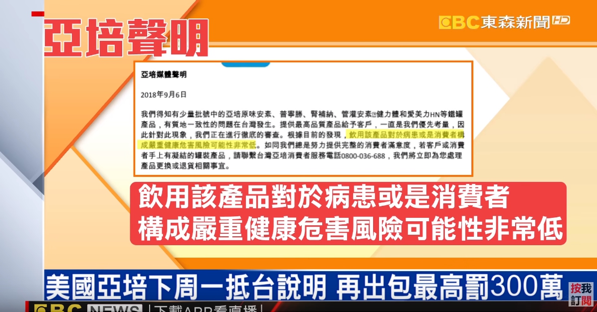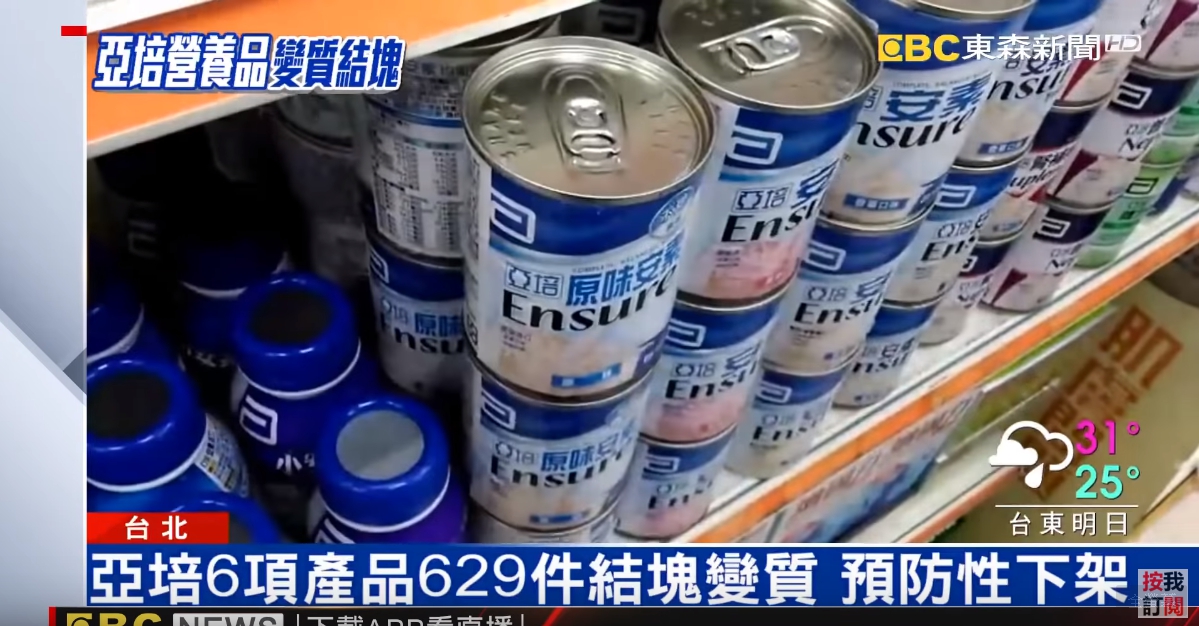 業者隨後發出聲明指出,「亞培原味安素」、「腎補納」、「普寧勝」、「管灌安素」、「健力體」及「愛美力HN」等6款產品都有變質疑慮,食藥署昨天宣布全台啟動預防性下架。