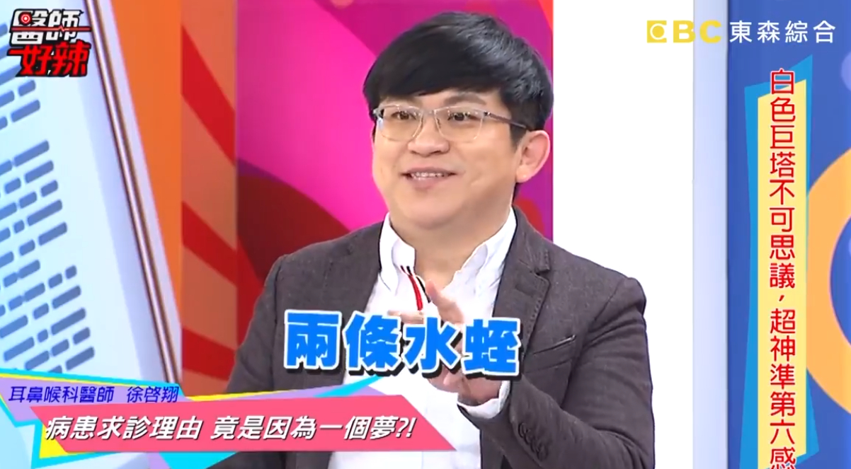 至於水蛭如何跑進患者的體內,徐啟翔補充解釋,因為患者平時喜歡取山泉水泡茶喝,有時水沒煮開就直接飲用生水,推測可能是水蛭幼蟲隨著生水跑到鼻腔後慢慢長大。患者夢境裡的「蛇掉頭上」竟神印證水蛭藏在頭內,這件事讓徐啟翔至今仍印象深刻,也讓現場的來賓聽了目瞪口呆。