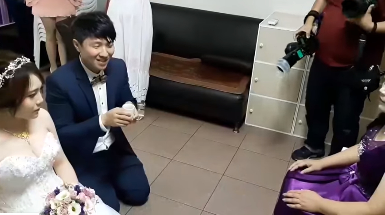 在台灣,「結婚」有許多傳統習俗需要遵守,常常讓新人覺得很頭痛,因為很容易一不小心就會「凸槌」!有一對新人,在結婚當天進行傳統儀式,但新郎不知是太過緊張,還是真的不知道,居然在奉茶時,當場把茶給乾了,讓在旁的新娘簡直看傻了眼,而這爆笑過程,也被在場民眾錄下PO上網,許多網友看完都說「笑到不能自已」。