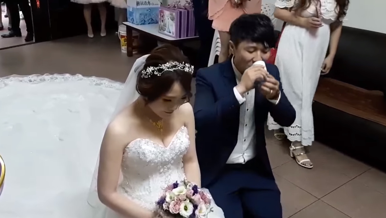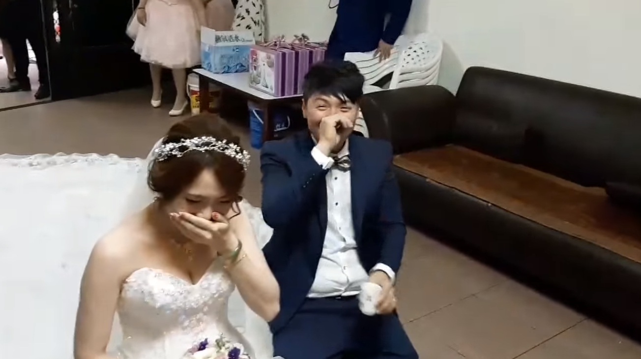 一名男網友在臉書「爆笑公社」貼出一段結婚儀式的影片,從畫面中可見,這對新人跪在女方家長面前,新郎官準備要感謝岳父、岳母對新娘的養育之恩,只見新人跪在岳父、岳母的前面,正準備奉茶,現場的氣氛有著濃厚的離別感傷,新娘眼眶中的眼淚也似乎要奪眶而出,但沒想到接下來的一幕卻笑翻眾人。