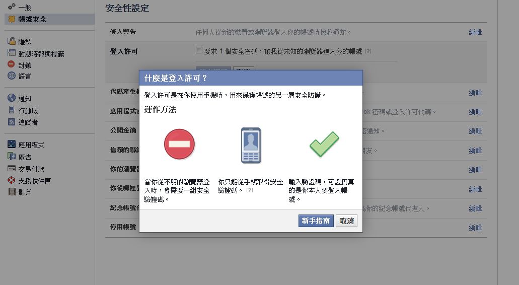 如果你沒像這位網友運氣那麼好,刑事局教大家可以到https://www.facebook.com/hacked網頁,依照步驟填寫新密碼和確認email,即可取回帳號掌控權。為降低facebook帳號被駭,民眾可以在「帳號設定」頁面上,點選「帳號安全」,打開「登入警告」通知,並設定認可的「瀏覽器與應用程式」。或者也可以在「登入許可」中,利用手機驗證碼,多設定一層安全的驗證來登入帳號。