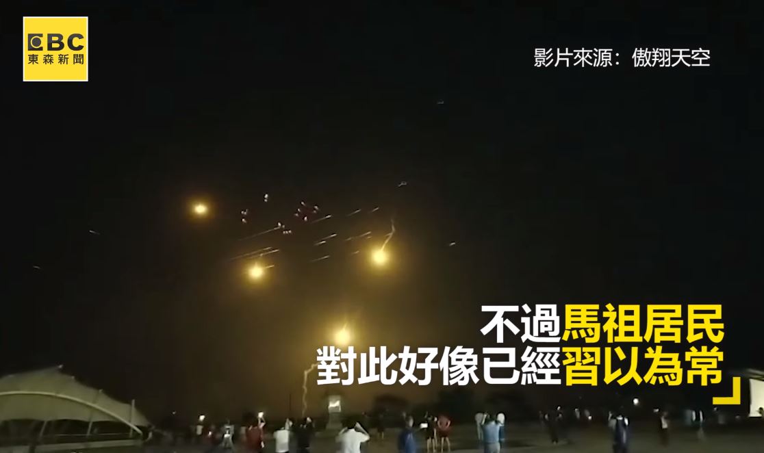 圍觀,有不少人也拿起手機紀錄這壯觀的一刻,根據《華視新聞》報導,有到南竿出差的民眾,晚餐突然聽見外頭傳來巨大槍響,趕緊到窗外查看,就看到滿天紅光,機槍不斷對空射擊,詢問當地居民才知道是實彈演習,不知情的遊客還以為是發生戰爭。