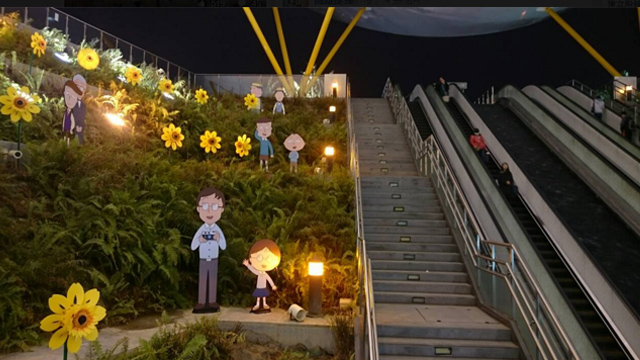 高捷公司與日本知名卡通角色「櫻桃小丸子」合作,在美麗島站打造「櫻桃小丸子主題車站」,除了將卡通中神社及公園場景搬到捷運站外,也推出了超多卡哇伊的商品。此外,高捷也為了這次的展覽,特地在中央公園站手扶梯旁種下向日葵花,小丸子與好朋友一起前來郊遊的超萌場景,吸引了許多遊客特地前來朝聖。高捷表示,白天、晚上各有不同風味,邀請大家一起來欣賞小丸子可愛模樣。
