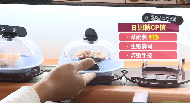 迴轉壽司公關顏力妃:「以CP值來講,我們算是鮭魚最大的進口商,所以來我們這邊你會知道,一定要吃我們的鮭魚。」CP值最高前三名都是鮭魚系列,包含鮭魚生魚片、鮭魚肚壽司、鮭魚卵軍艦,同時也是最熱門商品,甚至其五名幾乎都是鮭魚。迴轉壽司公關顏力妃:「像一貫來講(受歡迎的)就排第四名是焦糖鮭魚,它是一貫的,因為手工多了一道炙燒,焦糖的炙燒,CP值也算高,鰻魚、干貝這也是我們推薦,CP值很高的東西。」不過台灣迴轉壽司競爭激烈,不只台灣本土的這間有隱藏菜單,日本這間除了有扭蛋花樣之外,也有員工在網路透露,烏龍冷麵建議在把半熟蛋戳破前還可以加芥末,味道更好,而CP值高的商品有茶碗蒸,因為料夠多,還有生蝦壽司、炸蝦手捲。