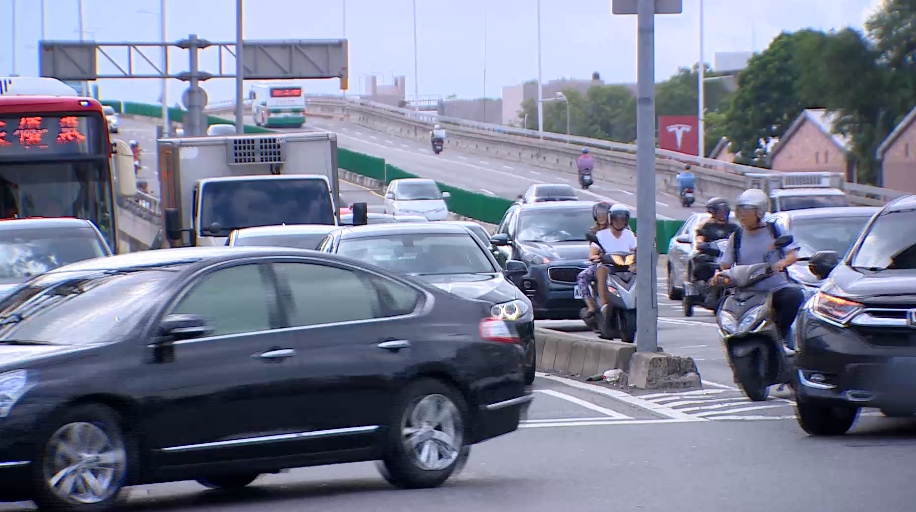車子來來往往,台北市民權大橋從8月20號開始,汽車往內湖方向,下橋之後禁止直接右轉。