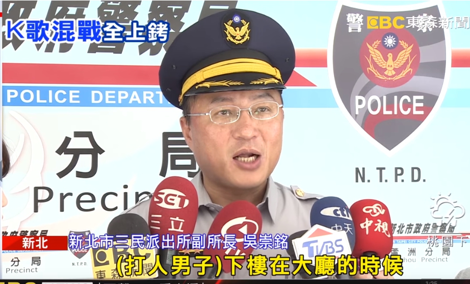 新北市三民派出所副所長吳崇銘:「(打人男子)下樓在大廳的時候有看到一個人在抽菸,當事人互看不順眼就打架。」