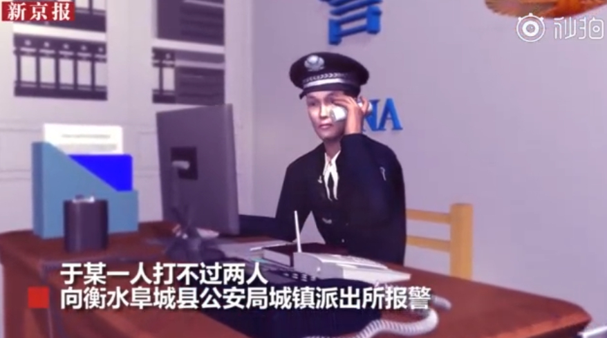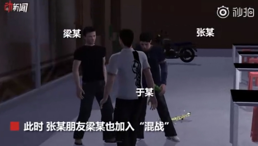 由於兩人當時酒酣耳熱,張男也生氣回罵,兩人在餐廳中大吵還不夠,索性拎起酒瓶去外面「開戰」,張男挑釁:「來來來,你打我!打我啊!」說完還將頭往于男伸,但于男沒動手,而是等張男轉身時,再往他的方向扔出酒瓶,酒瓶被丟到地上,噴濺起來的碎片飛到張男身上,兩人隨後大打出手,後來張男的朋友梁男也加入混戰,于男眼見寡不敵眾,跑到派出所報警。