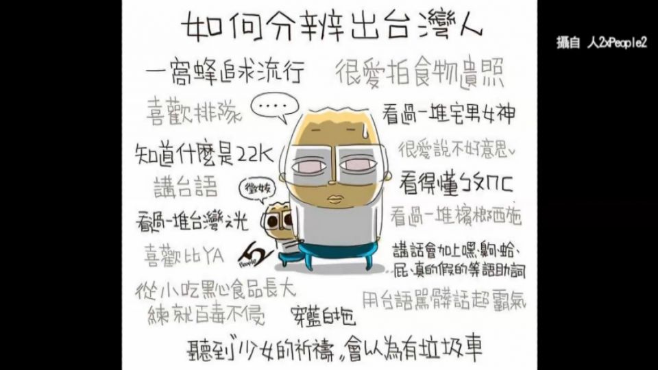 台灣人講的中文有很多特色。於是一共整理出五種,讓網友看了直呼:台灣人真的很多
