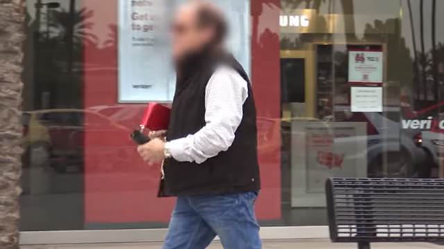 ●男子拾獲皮夾後,轉身就走。 (圖/ YouTube/ JoeySalads/Lost Purse)