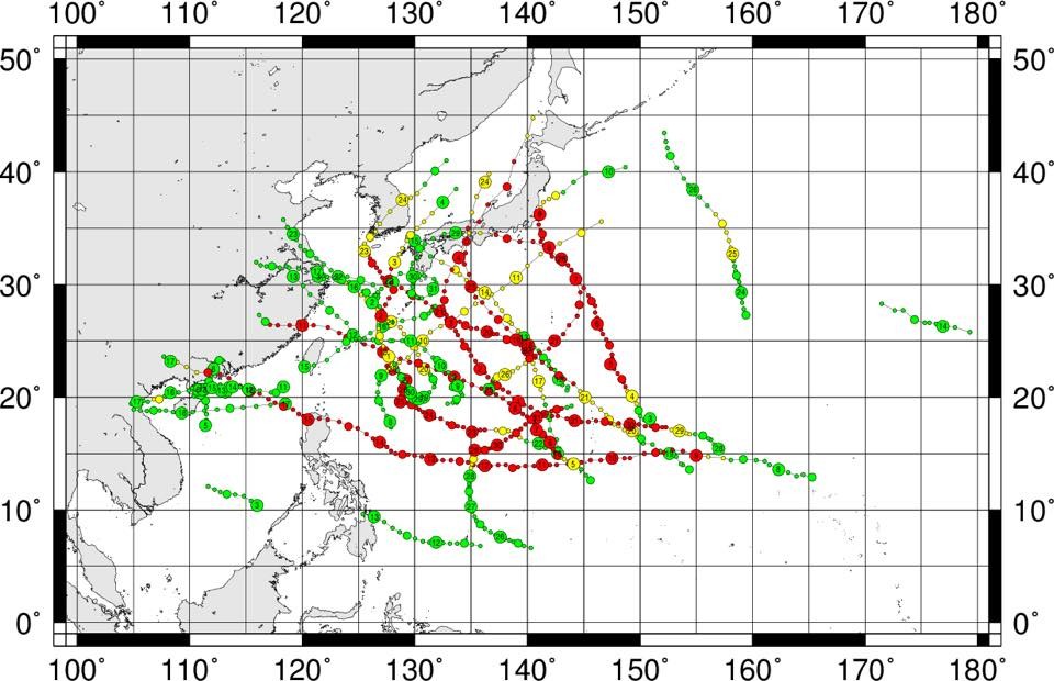 據氣象局最新颱風消息,康芮凌晨中心位置在台北北北東方約1000公里海面上,向東北移動,除影響韓國天氣,7日再轉往日本北海道附近。
