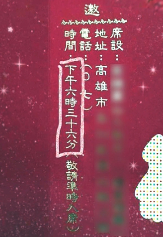 喜宴入席的時間嗎?其實大有學問!有張晚間6點36分入席的喜帖,最近在網路上引起熱議,收到喜帖的人很好奇,難道