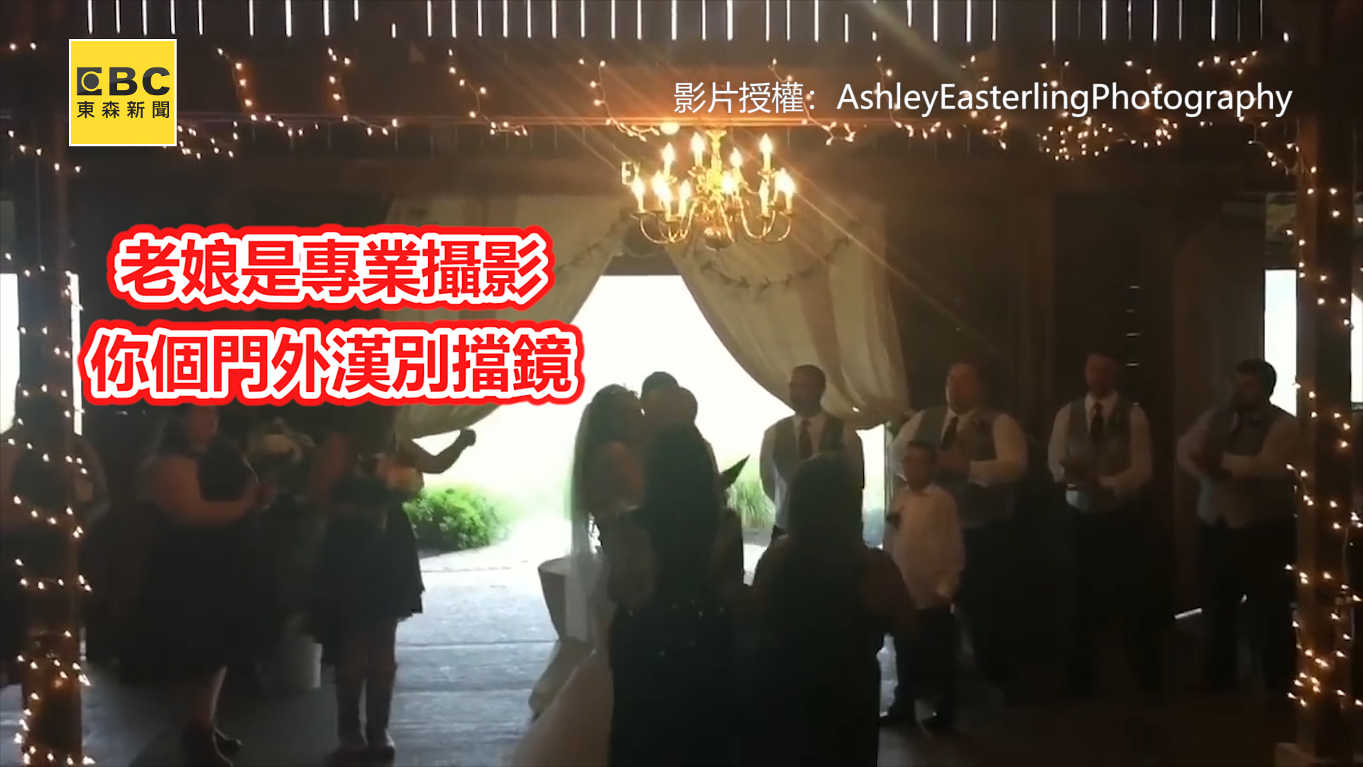接吻時,新娘媽拿著手機從一旁擠到Ashley面前,完全擋住她的鏡頭,Ashley只好一個move把新娘媽