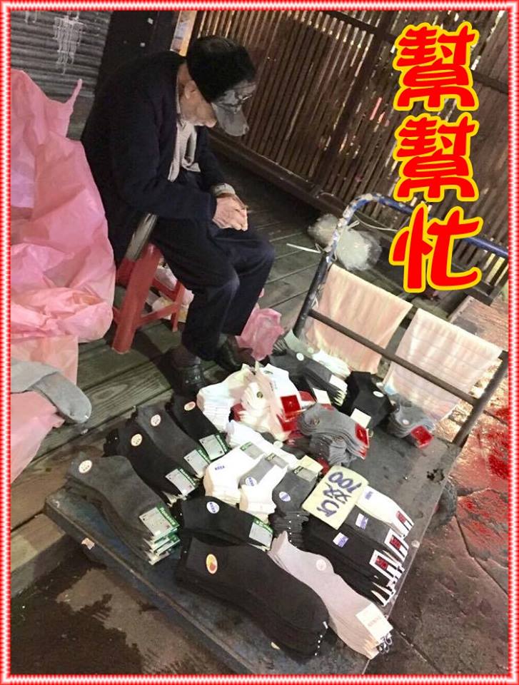 ▼爺爺擺攤賣襪子。(圖/翻攝自愛心姊妹淘關懷臉書)