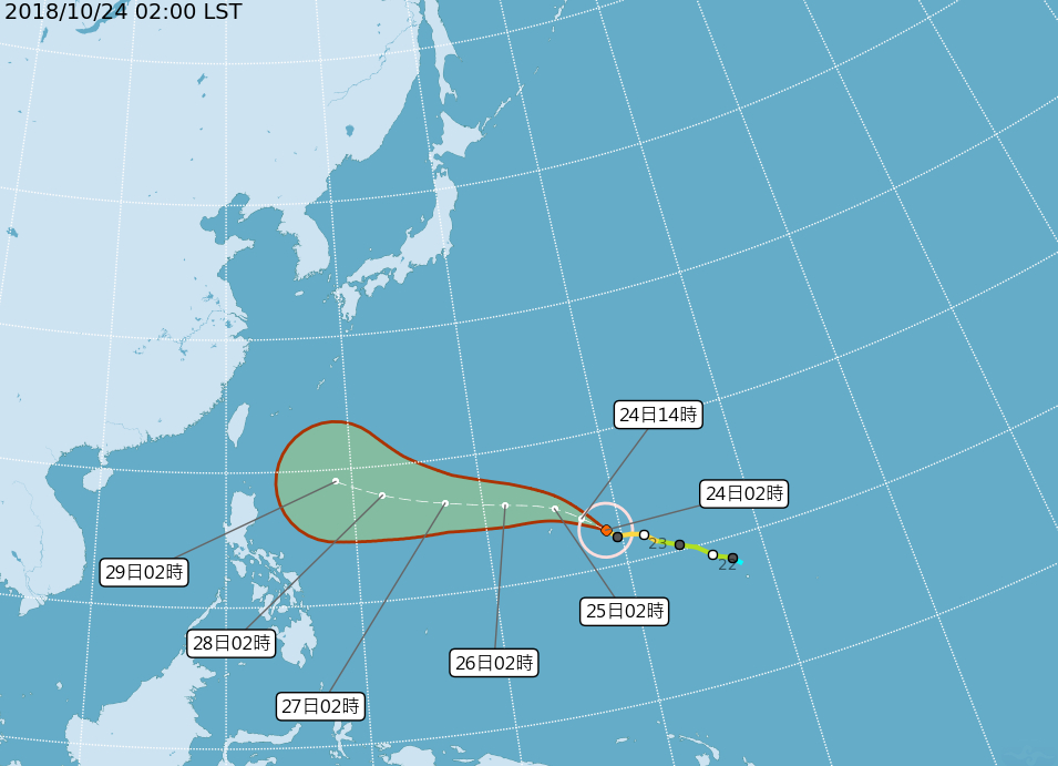 另外,位於關島東南東方的第26號「玉兔」颱風目前已增強為中度颱風,氣象局預測玉兔到琉球東南方海面後將逐漸北轉,直接侵襲台灣的機率不高。