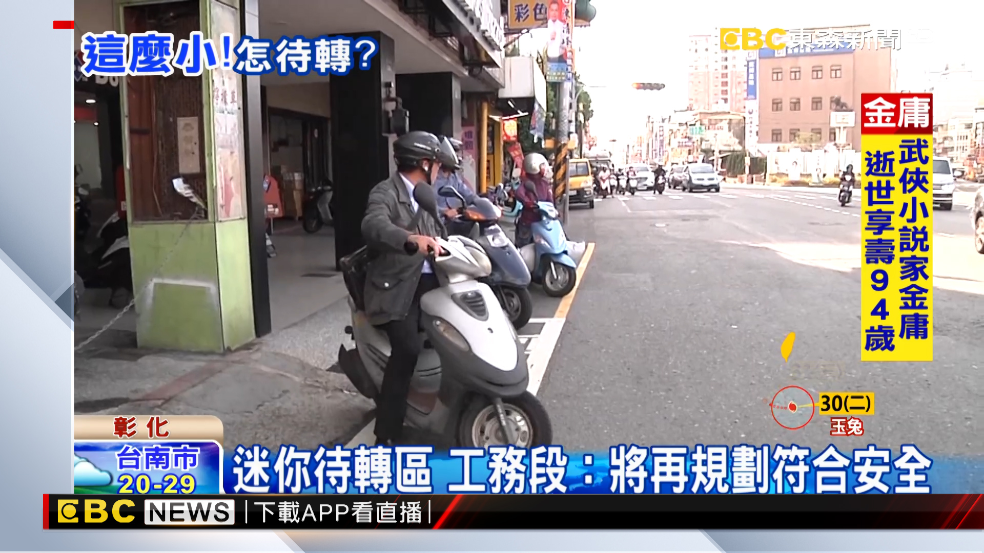 彰化市中山路二段和建國南路的K字路口,路旁小小一格,如果不是硬擠標上待轉區三個字,還以為是個機車停車格。不少民眾表示:「太扯了,待轉區要用個較適當的地方,還是要寬一點,不然這樣車又這麼多。」、「像這個設計的都不正常啦」、「這些商家又在這邊,他也沒辦法,但又一定要畫這區,不然我要轉也沒地方可以待轉,他們應該是逼不得已,只好畫這一區」,有騎士說待轉區太小很危險,不過也有人說不管大小 有畫總比沒有好。