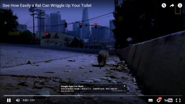 《國家地理頻道》之前做了一個實驗,首先驚訝的發現,原來老鼠可是潛水高手呀,游泳技巧一級棒,不管你家再乾淨、門窗小縫再緊密也擋不住牠,因為老鼠走的根本不是旱路而是「水路」!而且這條水路就是你家的「馬桶」。