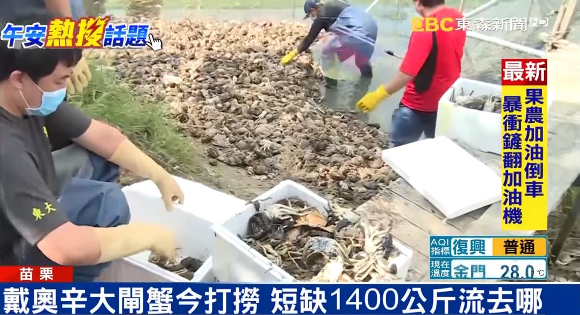 苗栗大閘蟹業者 陳石豐:「很慘啊,因為像這幾天,我們有些蟹農去外面吃,就看到苗栗大閘蟹最近有問題,大家看了就不敢吃,就走了。」