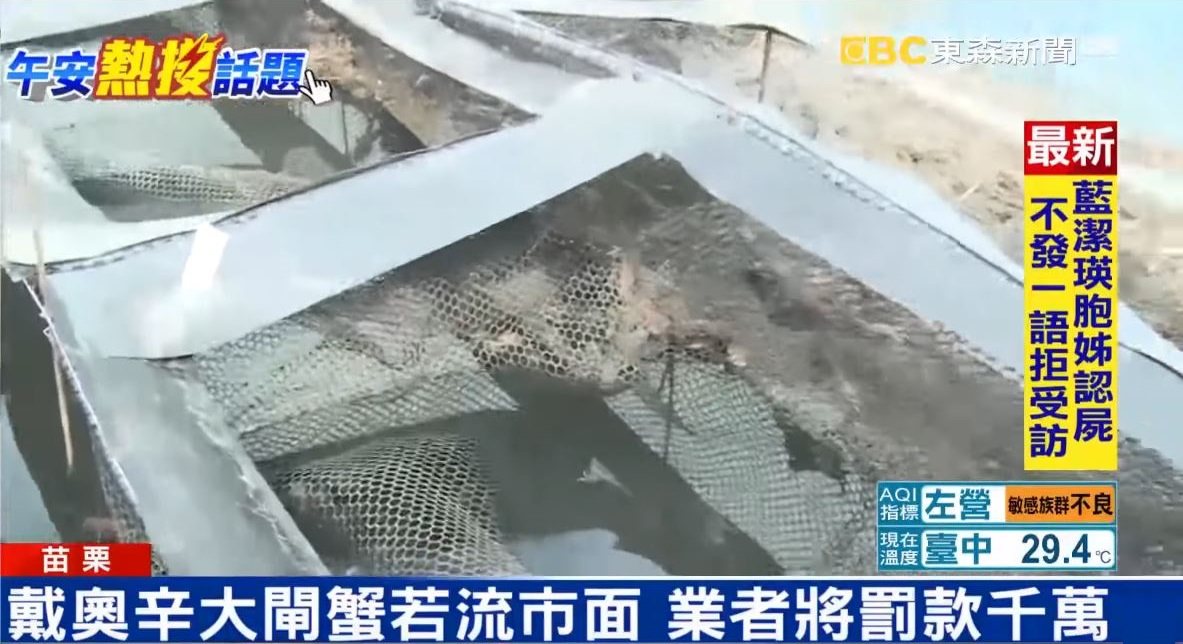 苗栗縣衛生局副局長 楊文志:「今天就是來檢視,在池塘裡面,有沒有剩下的這些大閘蟹,假設今天這些大閘蟹有流入市面,我們會依食安法,先行放行的相關規定,給予最高的裁罰,以市售價格的1到20倍做處份。」