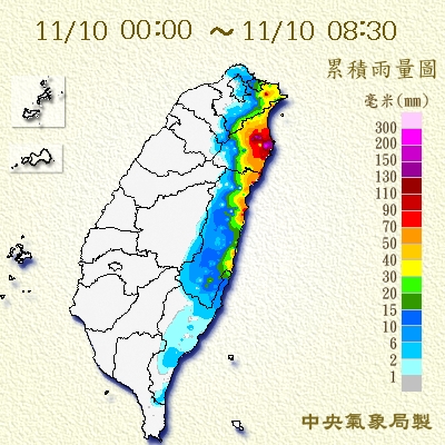 氣象局指出,今天清晨迎風面的大台北及東半部地區仍持續有雨,其中基隆北海岸、大台北山區及宜蘭、花蓮地區易有較明顯雨勢。