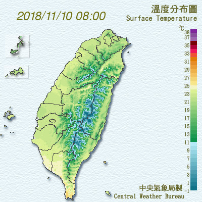氣象局觀測,白天起東北風逐漸減弱,迎風面的降雨可望減緩,大台北平地可轉為多雲到晴的天氣,僅剩大台北山區和東半部地區仍有局部短暫雨;溫度方面,白天桃園以北及宜蘭氣溫回升,各地舒適溫暖,高溫約可達27至29度以上,不過早晚還是有涼意,低溫約在20至23度間,中南部日夜溫差大。