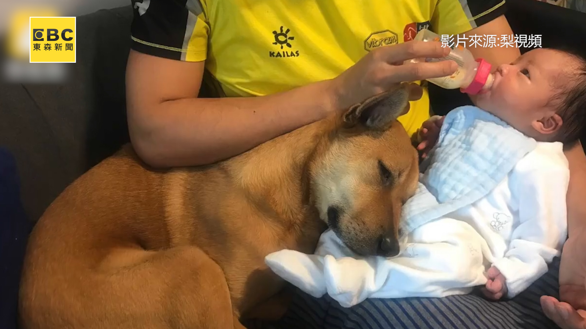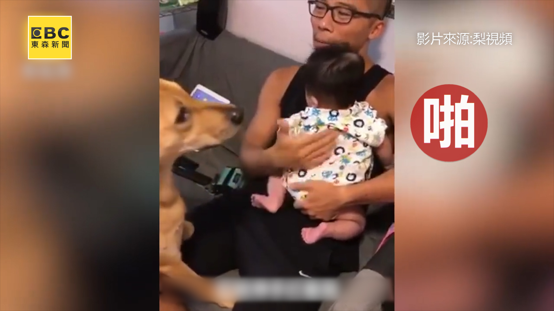 畫面中可以看到,一名爸爸在幫寶寶餵完奶後,怕過程中吸到空氣,因此幫他輕輕拍打背部,幫助打嗝,沒想到一旁的汪汪緊緊盯著爸爸,誤以為爸爸在欺負寶寶,趕緊伸手攔阻,不讓爸爸「打」他,這逗趣的畫面都被家人錄了下來。