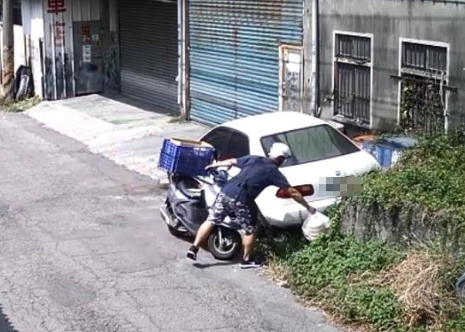 據《蘋果日報》報導,台中市潭子區一家汽車修配廠,6月份才發生屁孩將4包垃圾亂丟的事件,沒想到上(10)月21日,相同地點又出現了一袋完整的便當,老闆氣憤地調閱監視器,發現是一名外送員,從機車後座的籃子裡拿出一整袋便當,也不顧當時人來人往,就直接丟棄在草叢中。