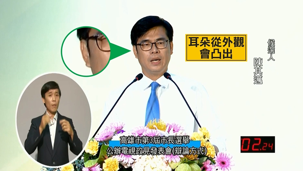 電影中辯論畫面,出現的耳機溝通有點誇大,但是現實中真的可行嗎?就是這段影片,高雄市長民進黨候選人陳其邁在政見發表會上被質疑戴了耳機引發討論,實際訪問3C達人,所謂的隱形耳機到底有沒有可能?3C達人:「如果真的看的話,他其實還是會有點大小,大致看你耳朵的話,大概裝進內耳式,大概有個本體,這個大概耳朵耳骨平行的地方差不多,所以其實他目前看網路上,候選人戴的大小,應該是比較不容易實現。」