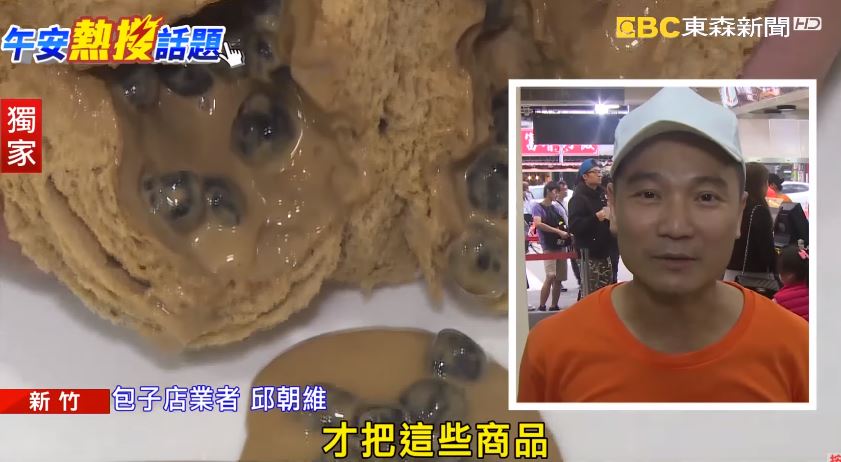 包子店業者邱朝維:「我們有去台南喝珍珠奶茶,我老婆就說你為什麼不把珍珠奶茶包進去,怕珍珠煮得太久太爛,所以我們克服很多問題,才把這些商品做到百分之九十才出來。」