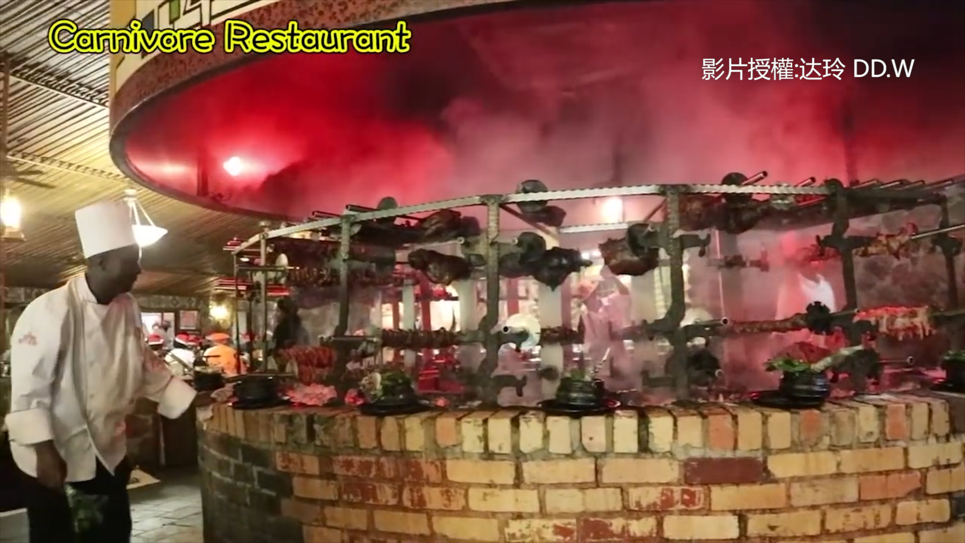 ▼廚師會運用置於餐廳中央的大型燒烤爐,將各種的肉烤熟(圖/翻攝达玲 DD.W)