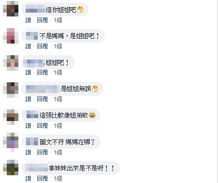 貼文曝光後,其他網友紛紛瞪大眼睛仔細看,不敢相信這名女子是位母親,「你說什麼?不是姐弟嗎」、「圖文不符,媽媽在哪」、「是父女吧」、「是應該說你老起來放,還是媽媽保養得宜呢」、「叫女朋友媽媽,她會生氣氣哦」、「你媽媽這麼年輕?你是偷抱來的吧」。