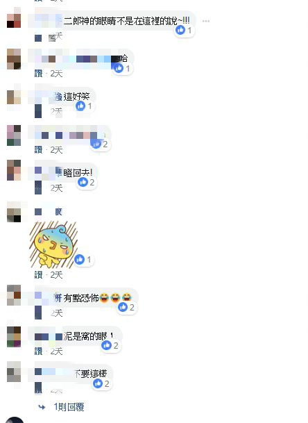 貼文發佈後,一開始網友們還擔心發生什麼事了,「肚臍眼」的真相曝光後讓眾人全都笑翻,紛紛留言:「以眼還眼,扒開你的釦子」、「那是真理之門」、「提起勇氣,拿筆在衣服上面寫,非禮勿視」、「有哏」、「瞪回去啊」、「需要召喚前鬼回來嗎」、「二郎神?」、「戳他眼睛」。不過,從這張照片中可以發現,列車座椅和樣式,並非是在台鐵上拍攝。
