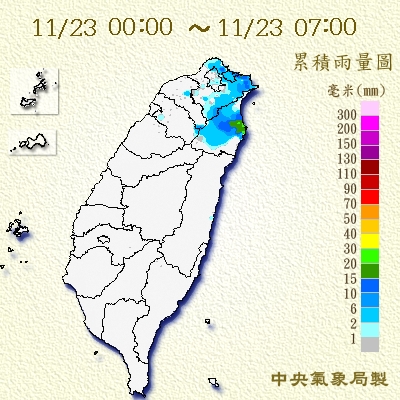 中央氣象局預報員李孟軒表示,鋒面通過後,過去兩天來的水氣逐漸轉少,不過今天仍受東北季風影響,北部及東半部地區仍有局部短暫雨,尤其是基隆北海岸及東北部一帶降雨時間較長,有局部大雨發生的機率,請大家出門記得攜帶雨具備用。而中南部地區大致陽光露臉,但靠近山區一帶有飄雨的機會,不過明(24日)起降雨機率大幅下降,可望有晴朗投票日。