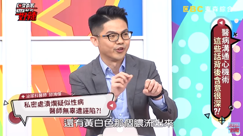 泌尿科醫師邱鴻傑在東森節目《醫師好辣》分享一樁染性病「腥事」,一對年輕夫妻來看診,老婆口述另一半「龜頭有破皮,有個水泡」且不時會疼痛。邱醫師直覺反問老公,有無不安全性行為?男子卻堅持表示「我只有跟我老婆」,邱醫師便再問老婆,有無相同的症狀,女方則說沒有。當下,邱醫師主張可驗性病檢測,怎料此話一出竟惹怒男子,認為自己根本沒做壞事,因此拒絕檢驗,只要求開藥膏回家擦,然而病情卻每況愈下。