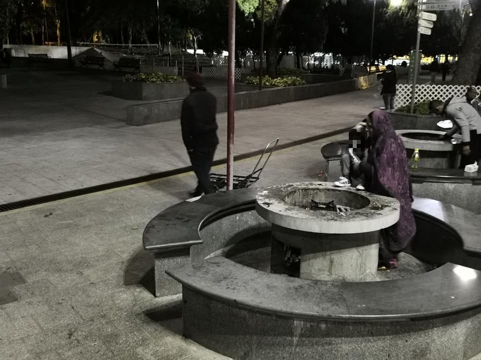 香港一名網友8日在臉書社團「巴打絲打 Facebook Club」貼出照片,畫面中似乎是烤肉專用場地,設立著一個個石子烤爐,而一對外籍母子在站在一個爐子邊,媽媽罩著紫色袍子,一旁的小孩則踩著烤爐邊。