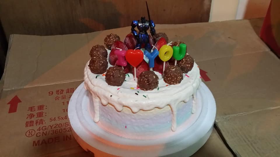 「我實在太沒勇氣跟他賭這把,所以進行了蛋糕改造!」只見原PO為了確保慶生過程完美,利用手邊容易取得的材料開始改造,首先把變形金剛巧克力片拿掉,改放上立體的柯博文模型公仔,周圍再鋪上一圈紅通通的新鮮草莓,最外圍則用金沙巧克力裝飾,最後插上蠟燭,「雖然改的不算漂亮,但怎麼比,我相信會比原本好…」。在改造過程中,原PO忍不住抱怨,已經花了1799原訂製蛋糕,沒想到還要多花好幾百塊材料費,「不過看見臭小子滿足的笑容,一切的辛苦都過去也值得了」。