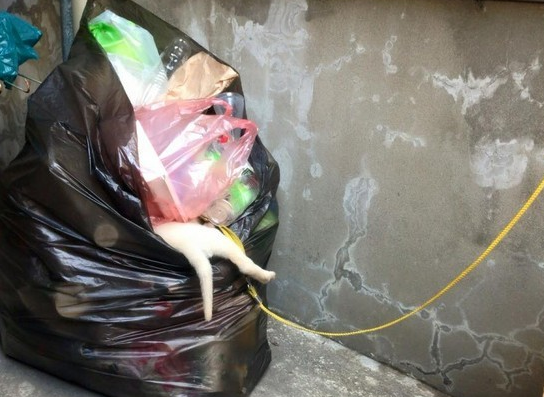 下午時,麻麻想看愛犬有無睡好,走到空地一看,發現「乖乖」半身埋進垃圾裡,只露出一隻腳和尾巴,心想大事不妙,迅速抱起「乖乖」身軀,沒想到牠睡的超香甜,原PO笑稱「當時第一眼看到我以為牠死掉了,結果是在睡覺,笑到我肚子痛」。