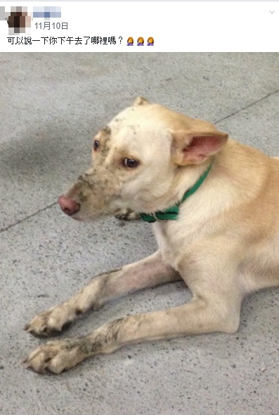 ▼「圓圓」亂跑,弄得全身髒兮兮。(圖/飼主梁家笙授權提供)