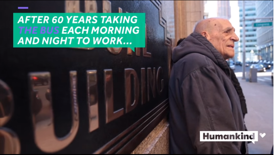 退休的日子,這也意謂著這將是他最後一次搭這班陪伴他60年的公車去上班。