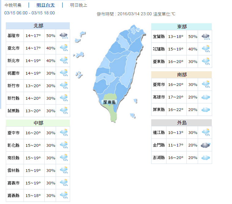 明天白天氣溫明顯回升,北部達23℃,中南部近30℃,東部則是23至25℃。提醒民眾,日夜溫差大,出門多加件外套。