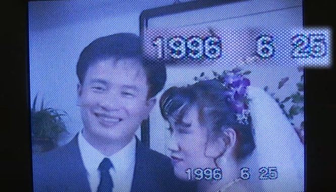 新郎捧著紫色鮮花 ,兩名小花童跟在後頭,親朋好友聚集在大廳見證這一刻。影片紀錄這對新人,人生最重要的珍貴時刻,從畫質上來看年代有些久遠,看看上面拍攝時間,1996年6月25日而這影片保存者卻不是原來主人。