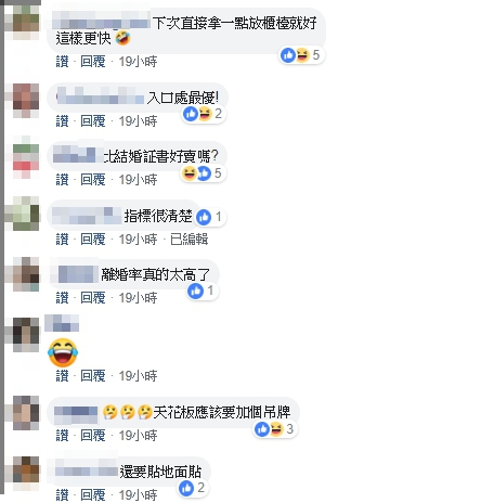 貼文曝光後引起網友的熱議,紛紛笑破肚皮:「本月暢銷商品」、「放櫃檯,明顯又熱賣」、「老闆直接準備好印章幫蓋就好了」、「團購會不會比較便宜,我開團」、「天花板應該要加個吊牌」、「買結婚證書送離婚協議書」。