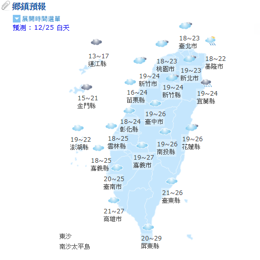 聖誕節天氣回升!今(25)日東北季風減,白天北部高溫可回升至23至24度,不過日夜溫差大,提醒民眾出門記得做好保暖措施。值得注意的是,週四(27)日有另一波冷空氣接力,恐達冷氣團等級,低溫下探14度。