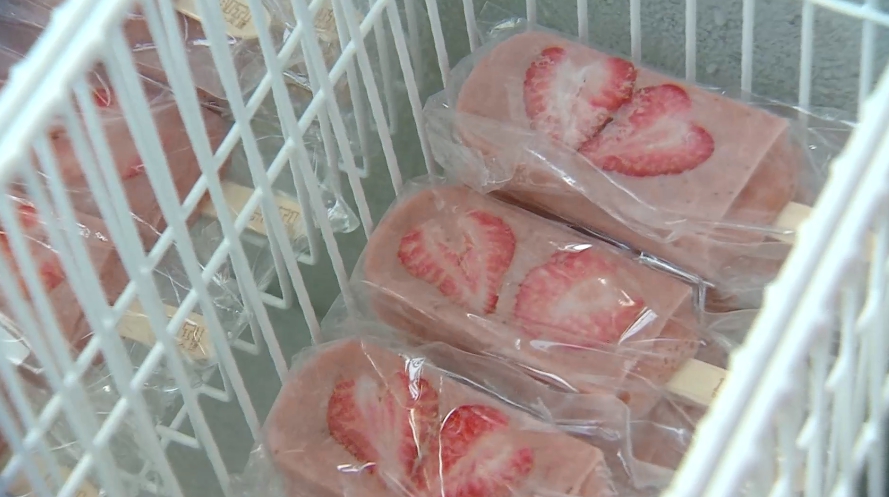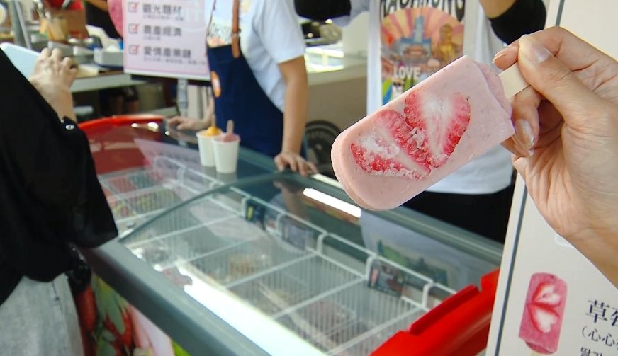 當季草莓冰棒,不僅粉嫩還有個兩顆愛心鑲在冰棒中間,充滿少女心,也是熱賣商品,但業者說,去年起步創業時真的好苦。