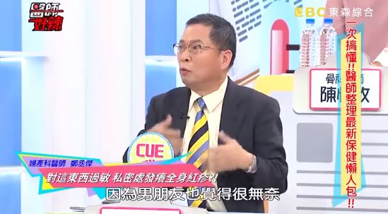 高雄醫學大學婦產科教授、台北博仁醫院海扶刀治療中心總監鄭丞傑在《醫師好辣》節目上分享,之前曾遇到一名女子來求診,透露她和男友第一次上床,開始正戲不到幾下就下體搔癢紅腫,讓她頓時嚇壞,認為是男友有性病卻沒有告知,不斷逼問男友「是不是有帶病」,還以為遇人不淑。