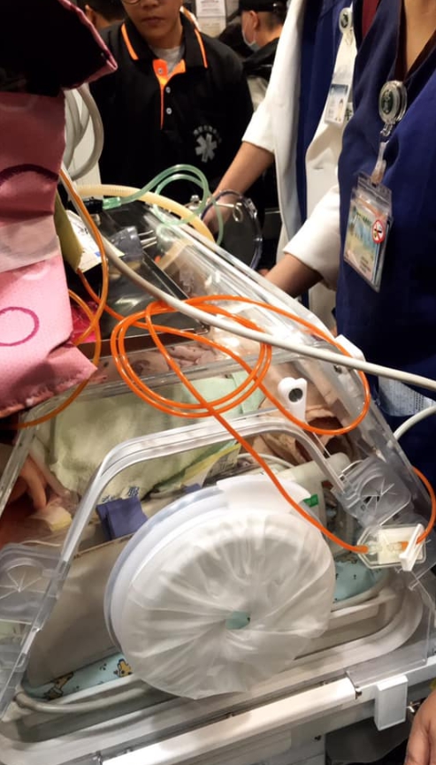 根據《蘋果日報》報導,嬰兒在媽媽的肚中僅6個月,就早產出生,體重才800多公克,雖然醫院照顧妥善,但後來又發現嬰兒肚子異常脹大,確診壞死性腸炎,情況相當危急,用藥已到極限仍不見好轉,才決定轉診台大開刀,不過路程遙遠,雖然有醫護人員陪同搭乘救護車,還是有風險,嬰兒的外婆則哽咽表示「但這個風險我們必須去冒,沒有辦法,再拖下去對寶寶很不利!」越說越難過,情緒幾乎潰堤。